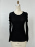 Découvrez Octavia, un chandail qui marie sophistication et modernité avec une simplicité désarmante. Confectionné dans un somptueux velours ciselé noir, son motif de losanges subtilement contrasté repose sur un fond noir légèrement plus pâle, apportant une profondeur raffinée à sa texture. Avec son encolure ovale et ses manches subtilement froncées à la tête, Octavia offre une touche de détail élégante sans compromettre la silhouette. Les fronces, discrètes et bien pensées, ajoutent du charme sans alourdir les bras, rendant ce haut facile à intégrer à tous vos looks. À la fois chic, confortable et polyvalent, Octavia est conçu pour vous accompagner avec style en toutes circonstances.